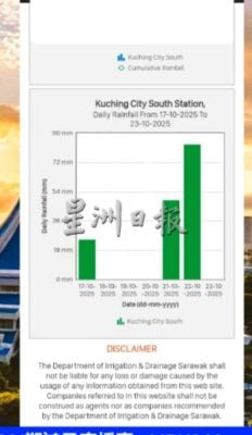 黄鸿圣今日主持脸书直播时说,根据砂水利灌溉局提供的数据,日前古晋降雨量在短短数小时内超过100毫米,属极端暴雨情况。