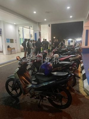(美里26日讯)为打击非法飙车活动,警方展开“道路流氓”取缔行动,共扣查18辆改装摩托车及针对各项交通违规行为开出82张罚单。