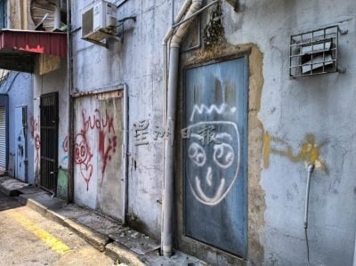 诗巫麦当劳后方店屋墙壁出现多处涂鸦。