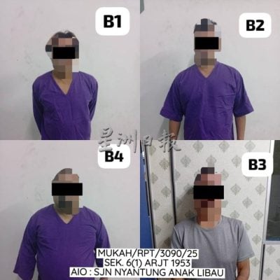 调查显示,66岁男子拥有两项犯罪前科,其余三人无犯罪记录。其中3名嫌犯在刑事法典第117条文下延扣至本月31日,另一名嫌犯则在警方担保下获释。