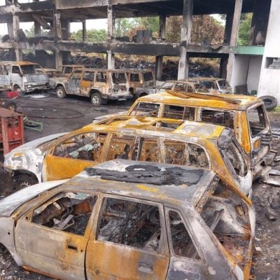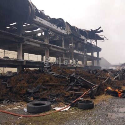 据观察,烧毁的4层楼回收厂除了堆满废弃轮胎,还有超过10辆车辆报废车辆。此外,现场也堆满铁桶、铁料等回收物品。