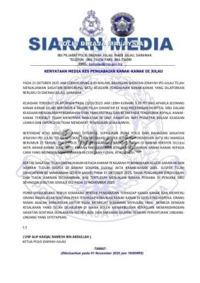 接获报案后,如楼县警察总部刑事调查组立即派员前往现场,并逮捕了一名21岁女子,即受害男童的母亲。警方依据《2001年儿童法令》第31(1)(a)条文(疏忽照顾或使儿童暴露于可能导致身体或情绪伤害之环境)展开调查,并将报告提交砂拉越州检察署。