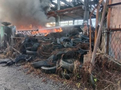 消拯员及时扑灭 旧轮胎厂火苗复燃(附视频)