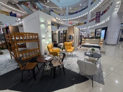 床架系列提供防污布艺床架及带抽屉设计款式,凡购买一张床架可获赠另一张。餐桌组合部分,大理石餐桌组售价从1990令吉起,木质餐桌组从998令吉起。休闲沙发组(1桌+2椅)原价1700令吉,现价仅1190令吉。