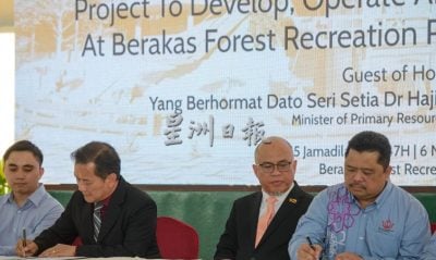 (汶莱斯里巴加湾8日讯)主要资源及旅游部属下森林局前午与婆罗洲生态度假村有限公司(Borneo Eco-Resort Sdn Bhd)在巴拉卡斯森林休闲公园签署协议,以进行该休闲公园的基础设施开发、运营及维护项目。
