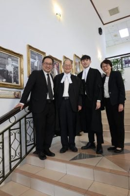 一家4人皆律师。左起为张健仁、张守江与张翰贤及陈慧宝合照。