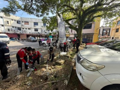 美里市政局公共卫生部人员前日在彬当再也商业中心后巷展开捕鼠行动。