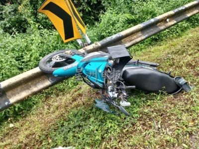 失控冲逆道.摩托撞车 中学生亡