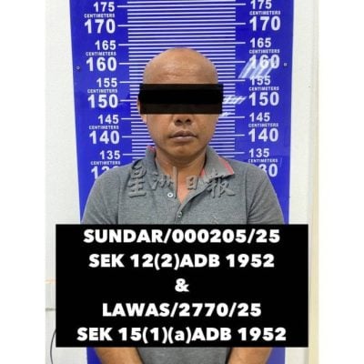 同日中午1时,警方在顺叻路边逮捕1名44岁本地男子,虽然未发现毒品,但尿检呈阳性反应。调查显示,他拥有5项毒品前科。案件援引1952年危险毒品法令第15(1)(a)条文调查。