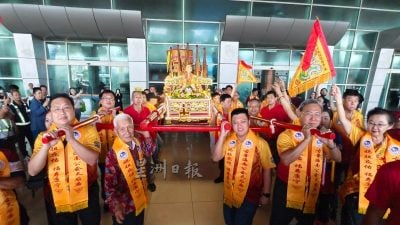 原定于昨晚11时抵达的妈祖金身及古晋海南公会代表团,因航班衔接受台风影响,延后至今午约2时30分抵达古晋国际机场。