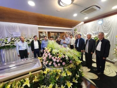 (诗巫14日讯)来自印尼的世界张氏总会永久名誉主席张锦雄,今天特别搭乘专机与一行人前来诗巫吊唁世界张氏总会创办人,并向他致上最后的敬意。