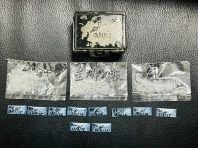 首宗案件发生于昨午5时50分,地点在老越大佬山路旁。警方拦查一辆由一名本地男子(47岁)驾驶的车辆检查,发现车内一个黑色塑料盒内藏有3小包塑料袋及10节吸管,皆疑似冰毒,总重量约6.92克。