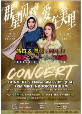 (美里18日讯)喜欢马来西亚实力女歌手茜拉(Shila Amzah)与蔡恩雨(Priscilla Abby)的美里歌迷有福了!星洲日报将配合美里GMT定于11月29日(星期六)晚上7时,在美里室内体育馆举办“群星闪耀爱在美里”文化慈善演唱会,送出300张分别价值388令吉及488令吉入场券予星洲日报全年订户和星洲电子报订户。