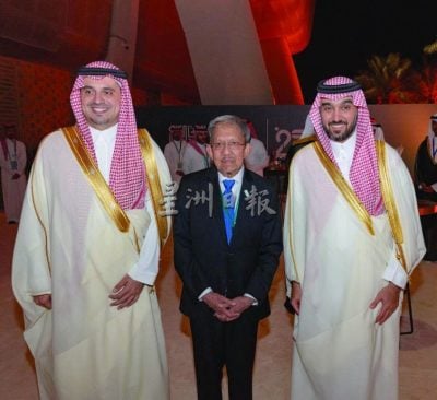 (汶莱斯里巴加湾24日讯)汶莱国家奥林匹克理事会主席哈吉苏菲里博尔基亚亲王日前出席,在沙地阿拉伯利雅得的努拉公主大学体育馆举行的第6届伊斯兰团结运动会闭幕典礼。