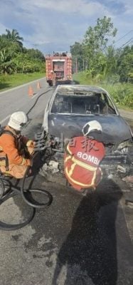 这起轿车起火事件发生在于柏戈奴甘榜苏巴的路段。