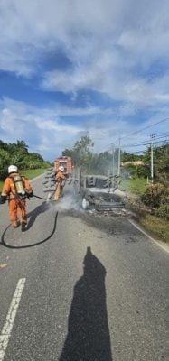 火烧车事件于日前下午四时许,在实务地镇通往泛婆大道美民公路支路,甘榜苏巴路段发生。