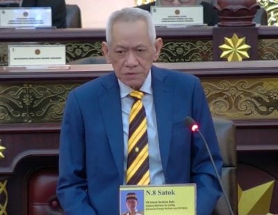 砂公用事业及通讯部副部长(砂能源公司及砂石油公司事务)兼砂能源公司主席拿督依布拉欣峇基今日在砂议会会议口头问答环节,回答埔奕区议员俞小的提问。