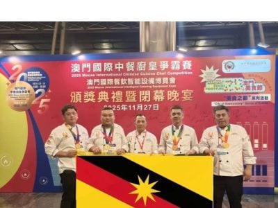 古晋姑苏厨业好友会说,何宝华与4名选手本次获得2025澳门国际中餐厨皇争霸赛团体赛金奖不仅为城市争光,也为本地中餐发展带来新启发。