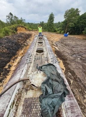 接著,水警在当地一个空地也找到一个油槽,并逮捕一名负责看守的本地男子。