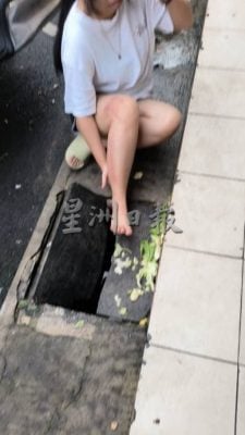 (美里7日讯)珠巴10号路巴刹外一处沟盖今早塌陷,一名女子疑因不慎踩上已有裂痕的沟盖而踩空摔倒,导致右脚受伤。