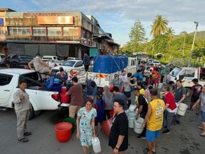 他表示,有关当局从昨天傍晚开始进行派水,水车停在尼亚石山镇码头附近,商家与镇民各自携带水桶取水。而今早至下午陆续会有水车到镇上派水,民众受促准备水桶盛水使用。