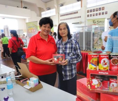 今早展销会场外即涌现排队人潮,民众一早便前来等候,以第一时间换取赠品。一些排队民众表示,展销会推出的限定好康深受社区喜爱,而今年更有企业赞助、活动内容也更丰富,因此特地提早到场,抢先兑换到限量礼盒。