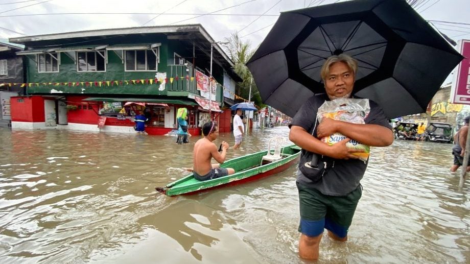 一场台风和另一场热带风暴引发的暴雨袭击菲律宾北部岛屿吕宋岛,迫使菲律宾在周四关闭学校及取消航班。
