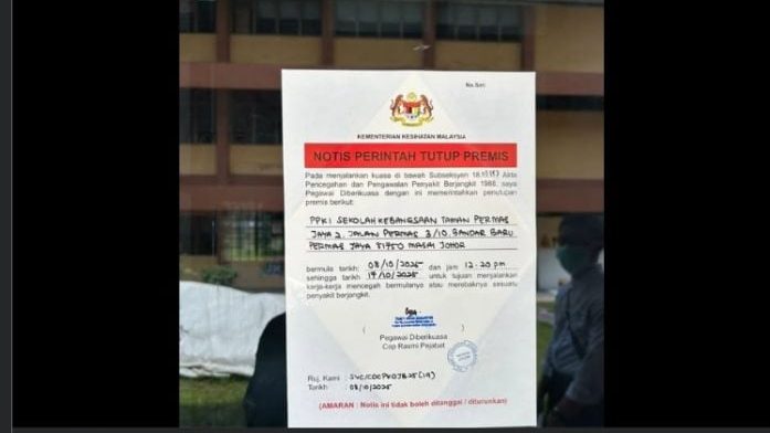 (新山9日讯)基于学生之间出现A型流感,柔佛州卫生局发出指示,勒令新山百万镇国小二校特殊教育综合计划班(PPKI)自昨日中午12时20分起停课10天至本月17日,以遏制流感扩大传播。 根据脸书于昨日流传出的有关通告内容,柔州卫生局是援引1988年传染病预防和控制法令第18(1)(f)条文,发出有关停课令。 网民贴出有关通告时,也特别提醒当地居民留意A型流感传播。 另一方面,百万镇国中也在脸书贴文通知,目前学生的流感病例有所增加,为了防止流感传播,校方要求学生家长或监护人保持合作,包括:如有任何学生确诊感染流感,并根据医生建议在家隔离,必须立即报告班主任;确保出现症状且感染风险较高的学生佩戴口罩;鼓励学生携带消毒剂或定期洗手;流感康复学生可在医生建议下返校。 贴文即展示流感症状、提醒学生们如何预防流感,包括咳嗽和打喷嚏时,使用纸巾或手帕遮挡嘴巴、戴上口罩、勤加洗手以及接种流感疫苗。