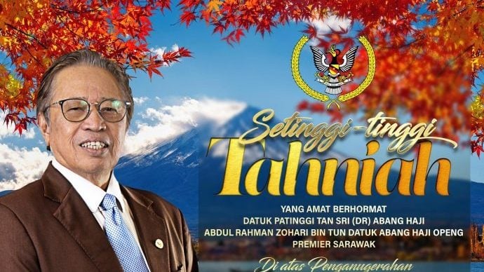 砂总理拿督巴丁宜阿邦佐哈里今日获日本天皇德仁颁授“旭日重光章”,他形容此殊荣不仅是对其个人的肯定,更是献给全体砂拉越人民的荣誉。